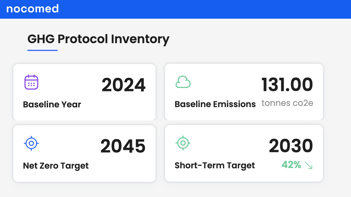 Nocomed provides the unique advantage of ongoing emissions management that no static pdf report can provide. While a report can offer an accurate single point in time, a software platform allows you to track progress against targets in real-time. This continuous visibility ensures that sustainability projects remain on track and that the "learning" from these initiatives is captured within your own team and organisation. This is vital as requirements, such as the required list of scope 3 categories, evolve while your carbon emissions GHG baseline and net-zero year are fixed. Further, seeing is believing and the visual nature of Nocomed enables teams to share information, make informed trade-offs, and collaborate to identify and implement carbon reduction project.